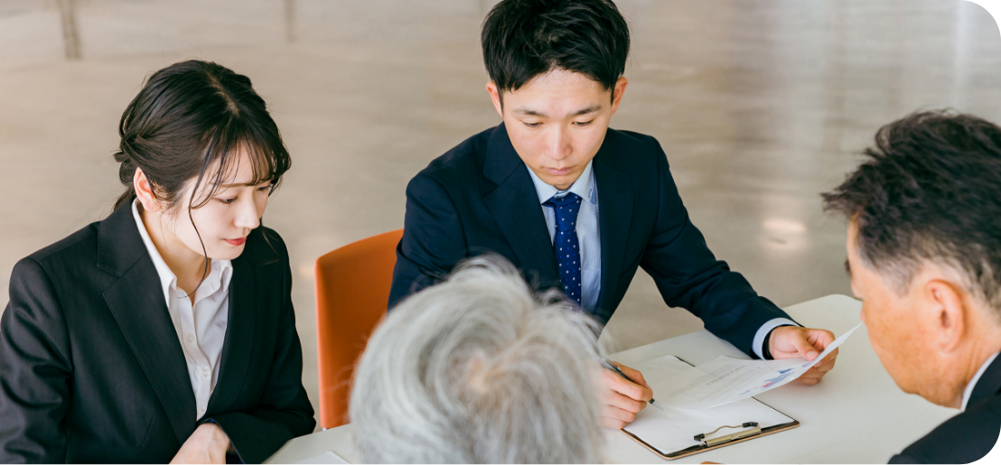 不動産を「売りたい」「貸したい」お客様と、「買いたい」「借りたい」お客様双方に向けて仲介業務を行います。最良の契約成立に向けて、両者がより良いお取り引きをしていただくために責任を持ってお取り引きをおまとめいたします。